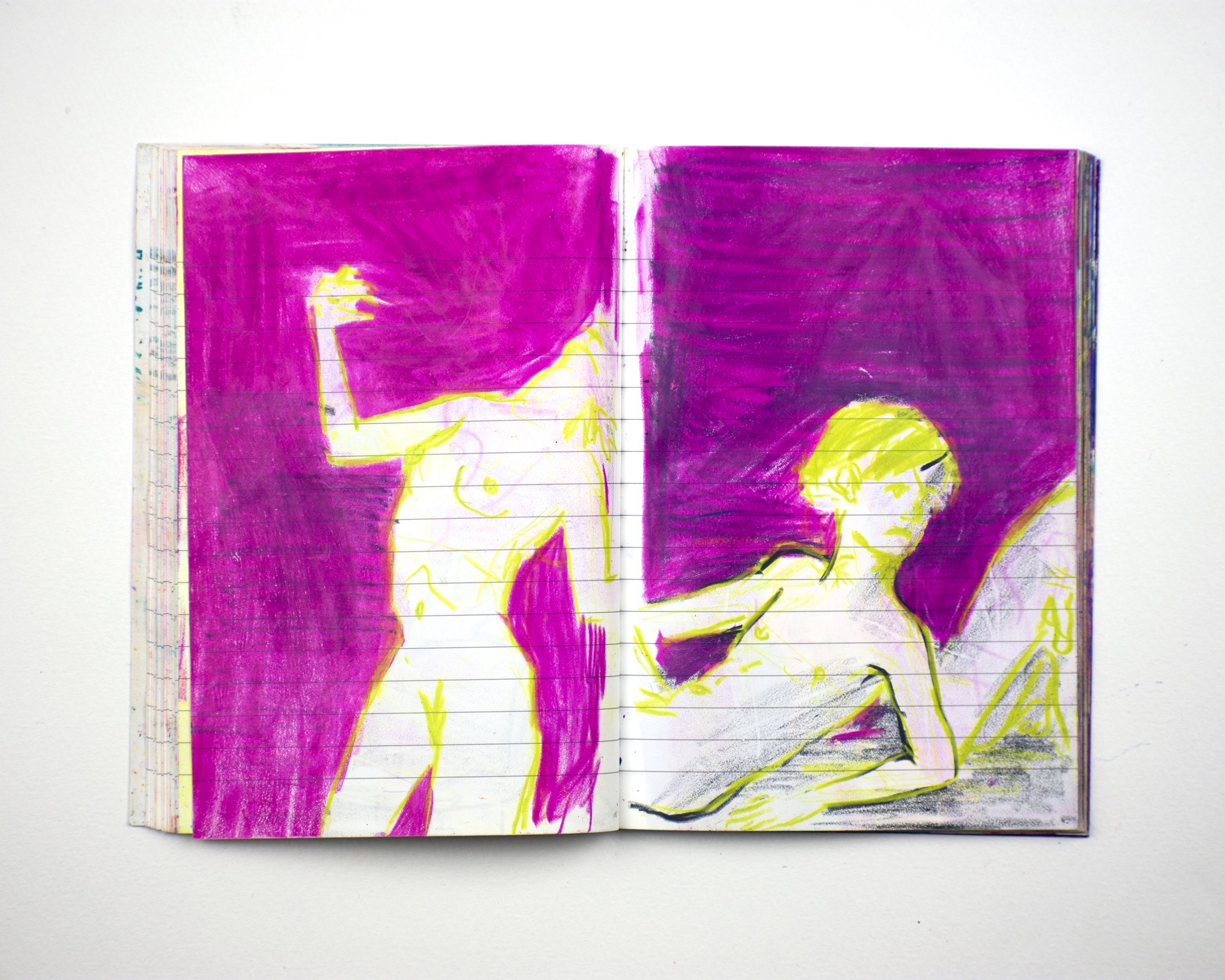 I medium carta, acqua e pigmento sono le forme artistiche più dirette e più vicine al linguaggio. Il mio lavoro su carta gioca con la narrazione e il desiderio come tensione tra controllo e caos; tra un tocco morbido e una mano energica.